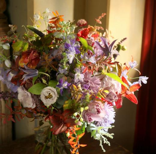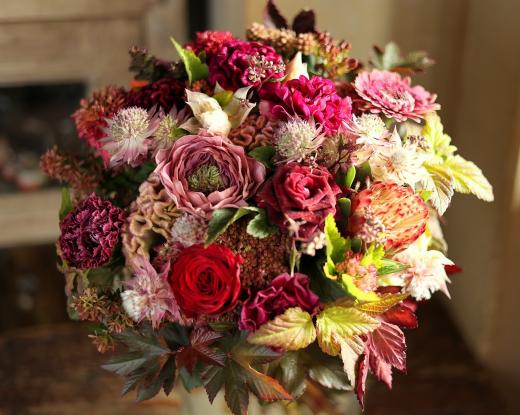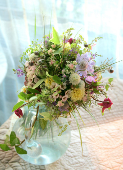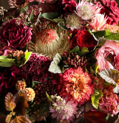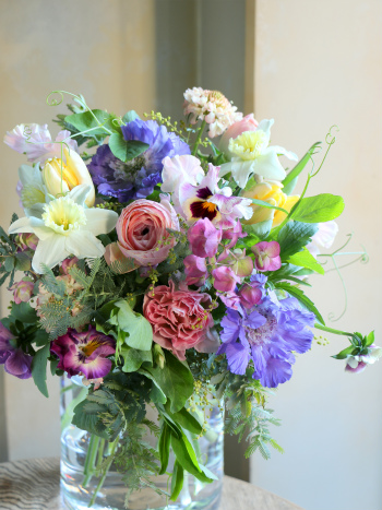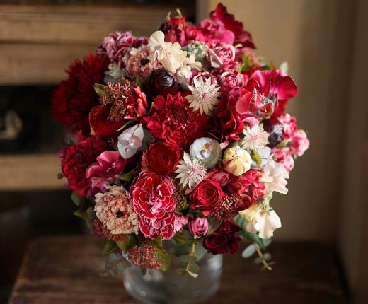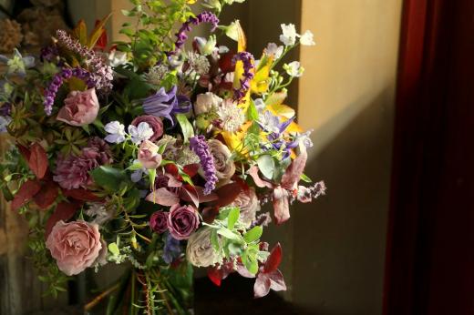 画家が絵の具をキャンバスに並べて1つの絵画を描いたように、ブーケの中にたくさんの花を並べて絵を描くように花を束ねます。