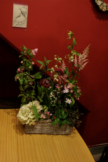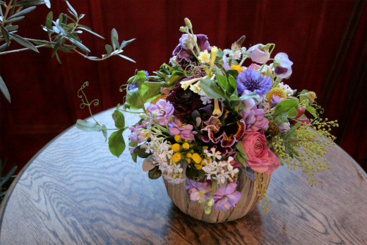 やはり、少しの花象徴主義という気持ちで、ルドンの絵画のどこか不思議な雰囲気を表現するべく、変わり咲きのラナンキュラスなどを交えてみました。