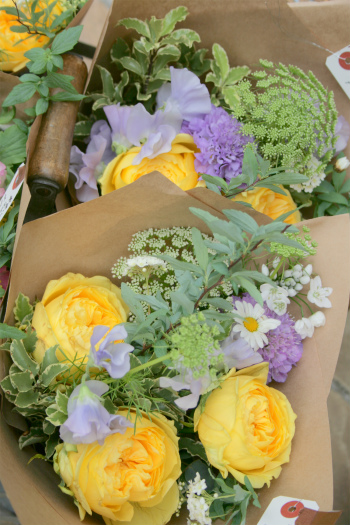 久しぶりの市場では、寒さの中でもたくさんの春の花に出会えて、